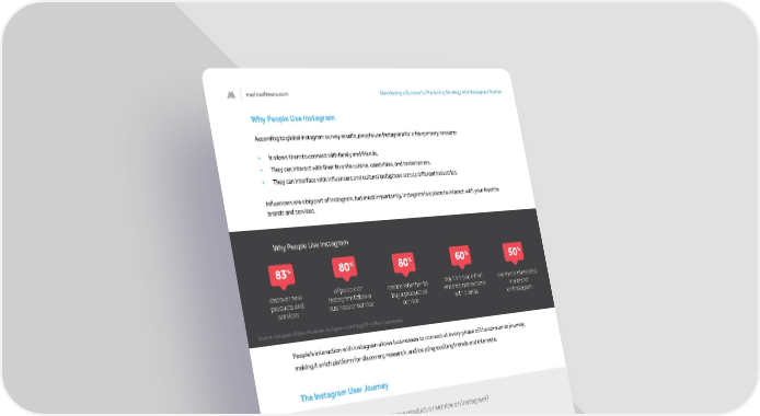 marinsoftware.com Developing a Successful Marketing Strategy with Instagram Stories 4 Why People Use Instagram According to global Instagram survey results, people use Instagram for a few primary reasons: • It allows them to connect with family and friends. • They can interact with their favorite cuisine, celebrities, and tastemakers. • They can interface with influencers and cultural instigators across different industries. Influencers are a big part of Instagram, but most importantly, Instagram is a place to interact with your favorite brands and services. People’s interaction with Instagram allows businesses to connect at every phase of the consumer journey, making it a rich platform for discovery, research, and locating exciting trends and interests. The Instagram User Journey These numbers show that Instagram is a robust place for user activity. Instagram’s future, however— particularly from an ads buying standpoint—lies in Instagram Stories. 83 % 80 % 60 % 80 % 50 % discover new products and services decide whether to buy a product or service of people on Instagram follow a business or service say it’s a place that enables interactions with brands are more interested in a brand on Instagram search for more information 79 % visit the brand's website or app 65 % visit a retail store they've discovered on the platform 37 % talk to their friends and family about the brand or experience 29 % make an online purchase 46 % follow the brand's account online 31 % What happens after someone sees a product or service on Instagram? Why People Use Instagram Source: Instagram (https://business.instagram.com/getting-started/#why-instagram) Source: Instagram (https://business.instagram.com/blog/25-million-businesses)