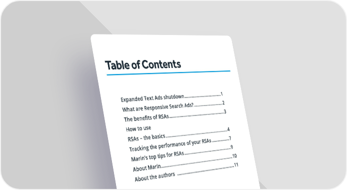 Table of Contents Expanded Text Ads shutdown ................................. 1 What are Responsive Search Ads? .......................... 2 The benefits of RSAs ................................................. 3 How to use RSAs – the basics ....................................................... 4 Tracking the performance of your RSAs ................ 7 Marin’s top tips for RSAs .......................................... 9 About Marin ............................................................... 10 About the authors ................................................... 11 ii Marin Software